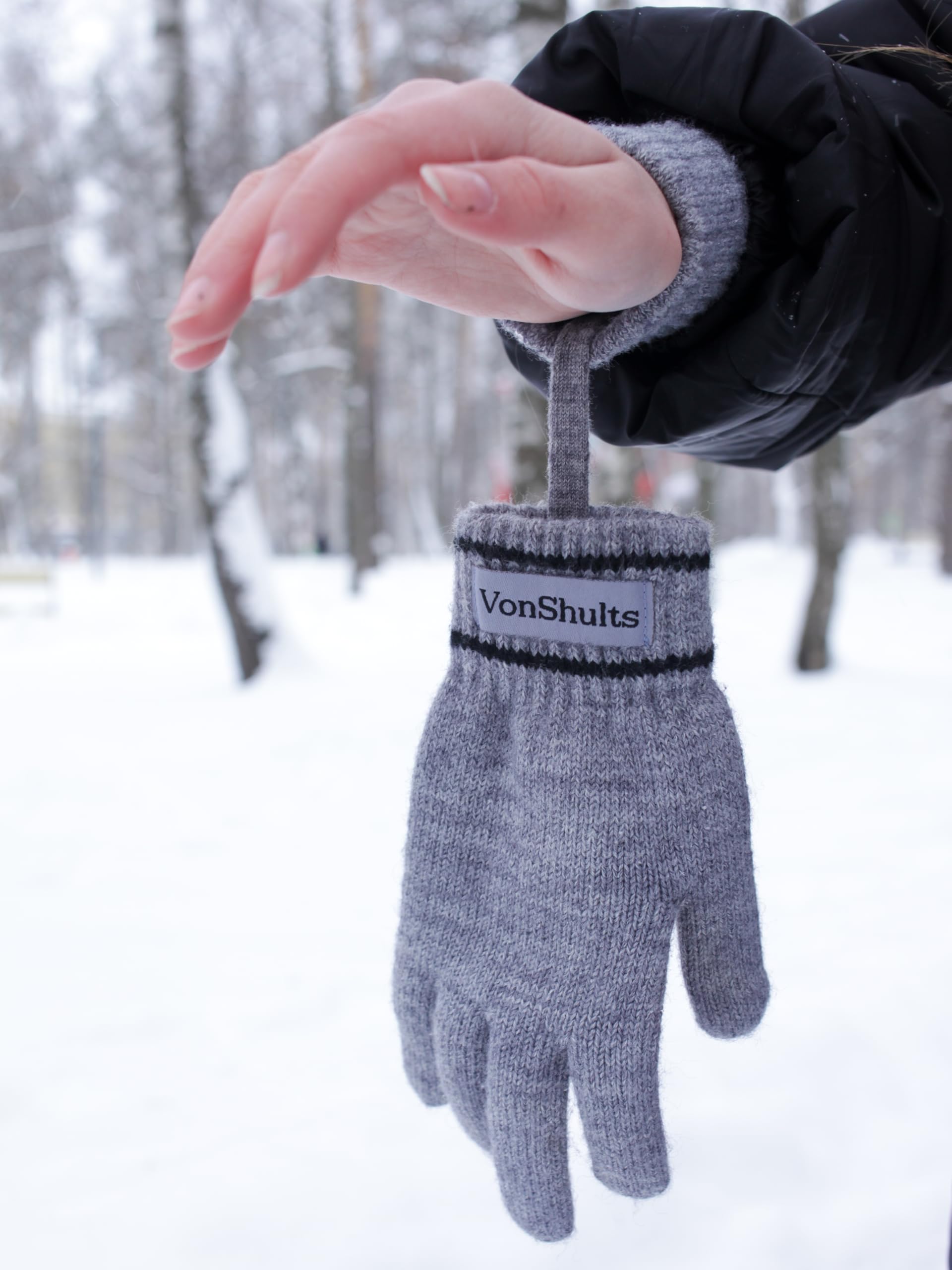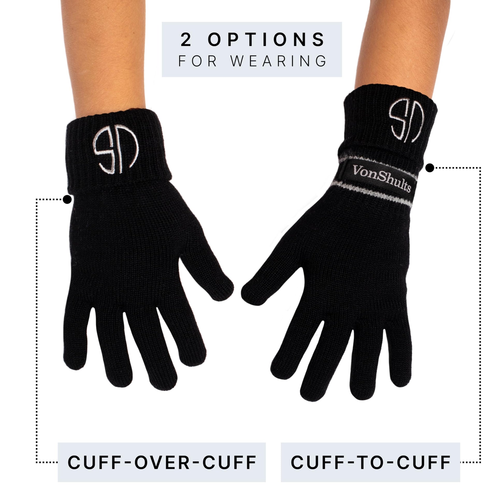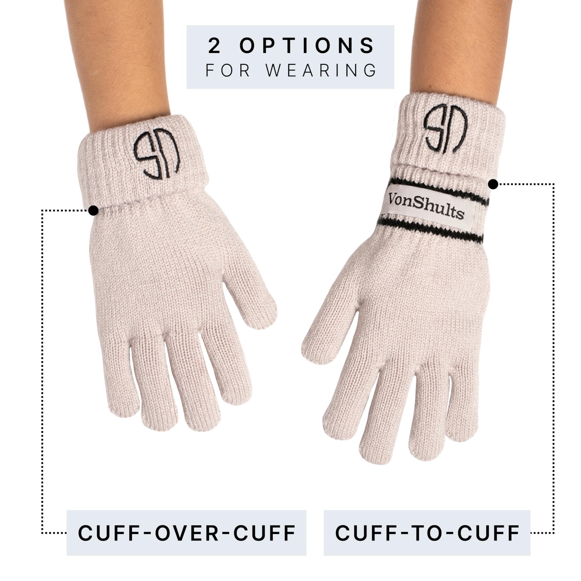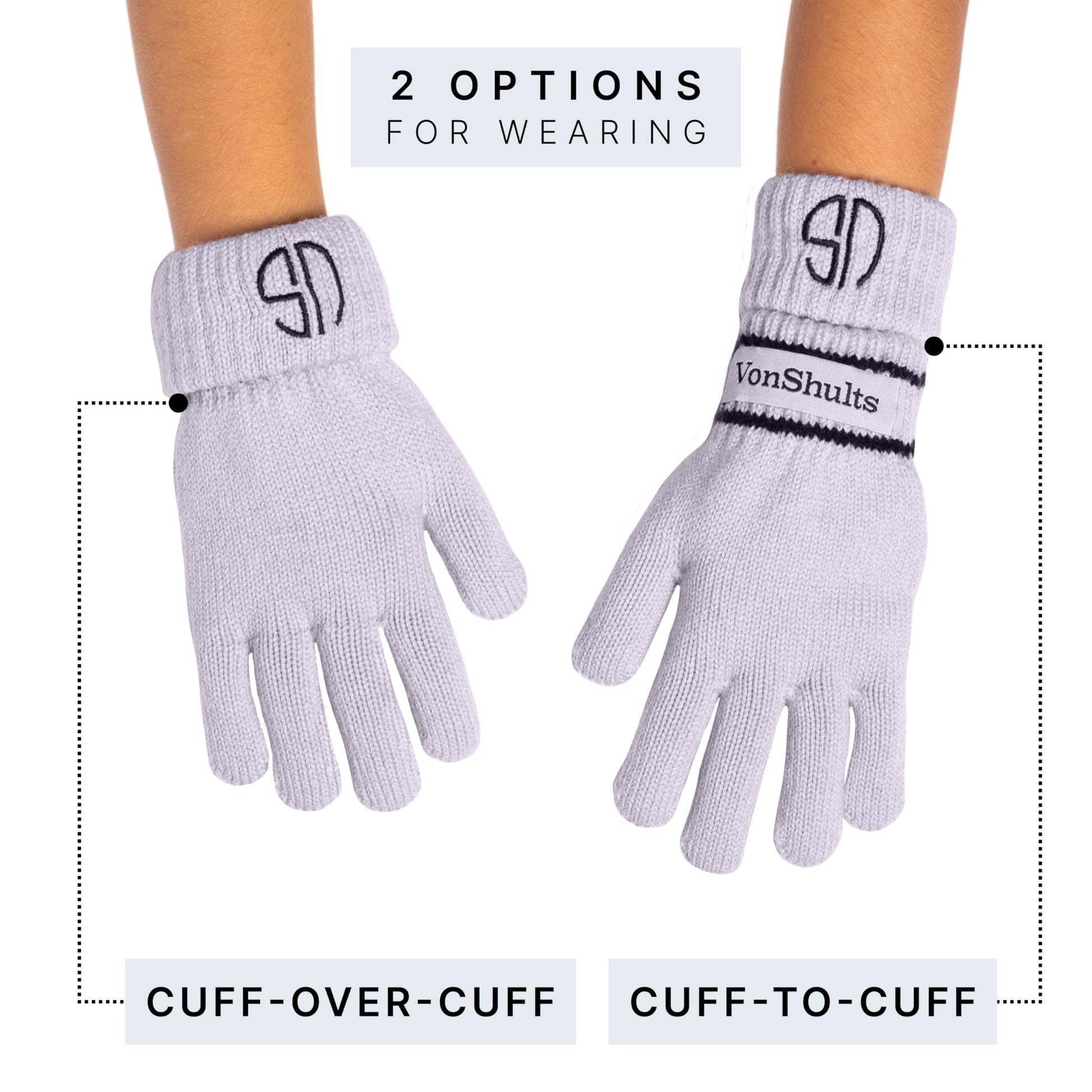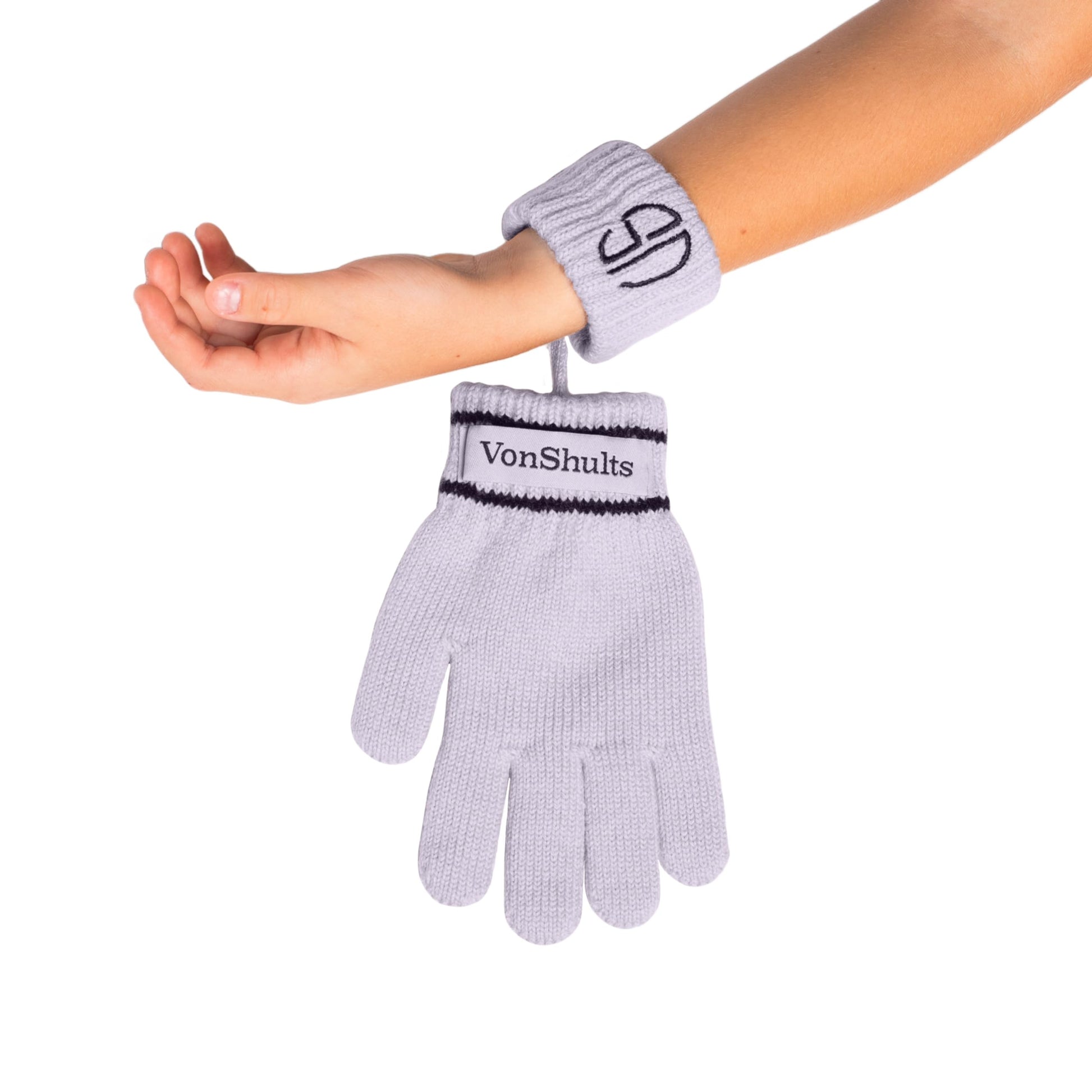 VonShults Merino Wool Winter Gloves Kids Teens with Wrist Strap Strings No Clips - Never-Lose Warm Cold Weather Mittens with Band Cord